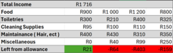 Expenditure data from four NSFAS-funded students across different institutions and provinces shows that three out of four operate on a monthly deficit.
